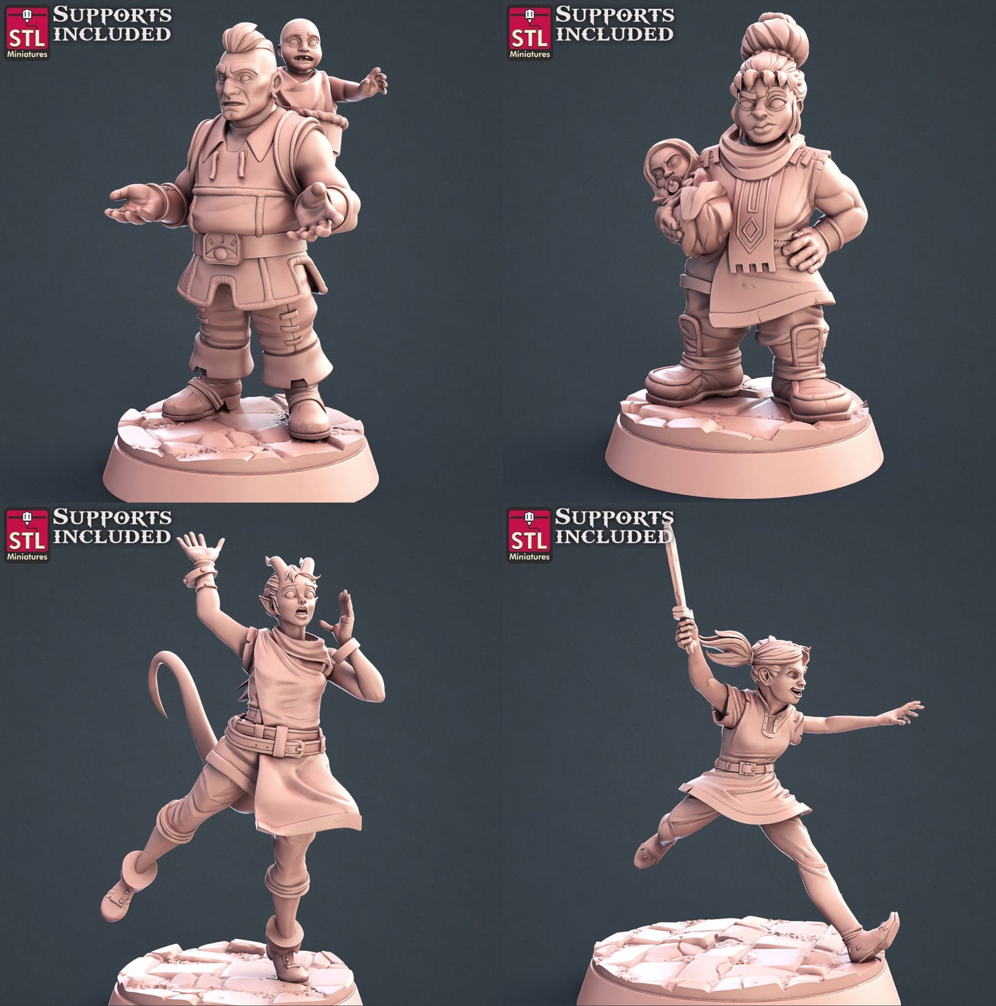 Townsfolk NPC Set 1 | Tabletop Scale | D&D TTRPG Miniature | STL Miniatures